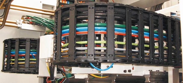 首先,坦克链导向槽的宽度必须大于坦克链外宽度,最起码要大于20毫米,但不不宜超过30毫米,以避免坦克链在导向槽内发生振荡。其次,导槽的方向必须与电缆连接位置平行,水平方向的误差不大于小于±5毫米。如果这些都能够做到的话,那么就可以延长坦克链的使用寿命了。